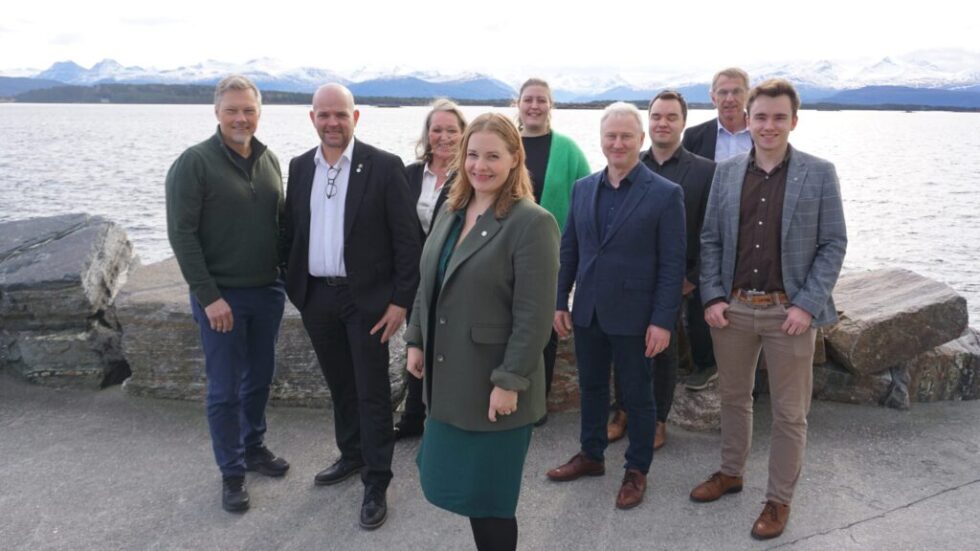 Nytt fylkesstyre i Senterpartiet Møre og Romsdal. Frå venstre, Per Ivar Lied, Geir Inge Lien, Anne Kathrine Notøy, Silje Beate Gulbrandsen Holten, Trond Malmedal, Markus Farstad Andersen, Jan Peter Valde, Sevrin Dahle Sæterøy. Framme: Lisa Alvestad. Foto: Senterpartiet